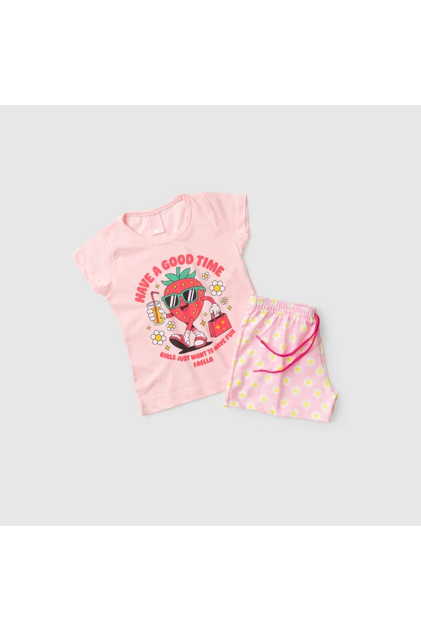 Conjunto Infantil Verão Feminino Moranguinho de Oculos – Rosa