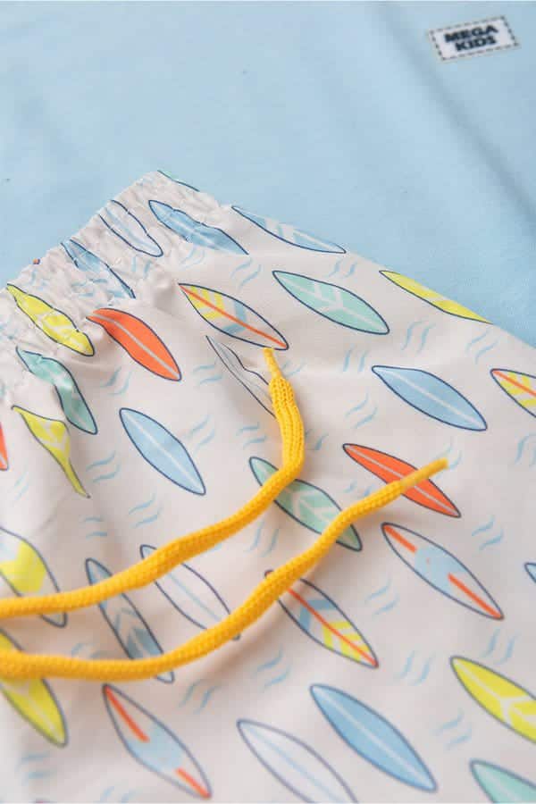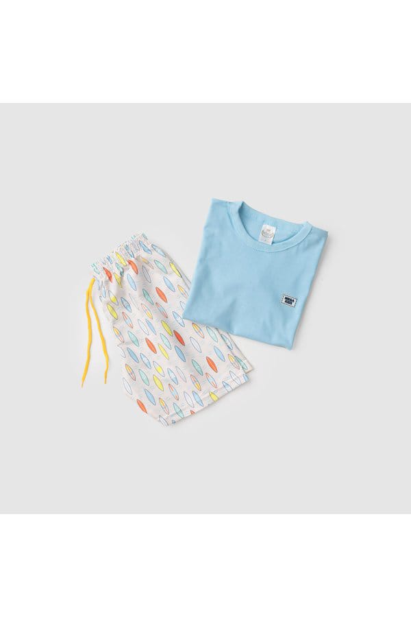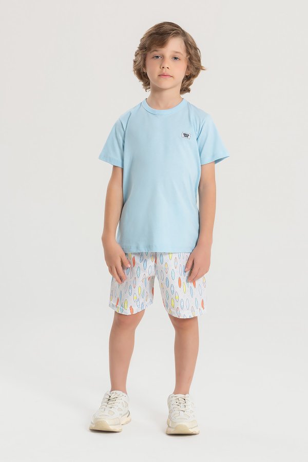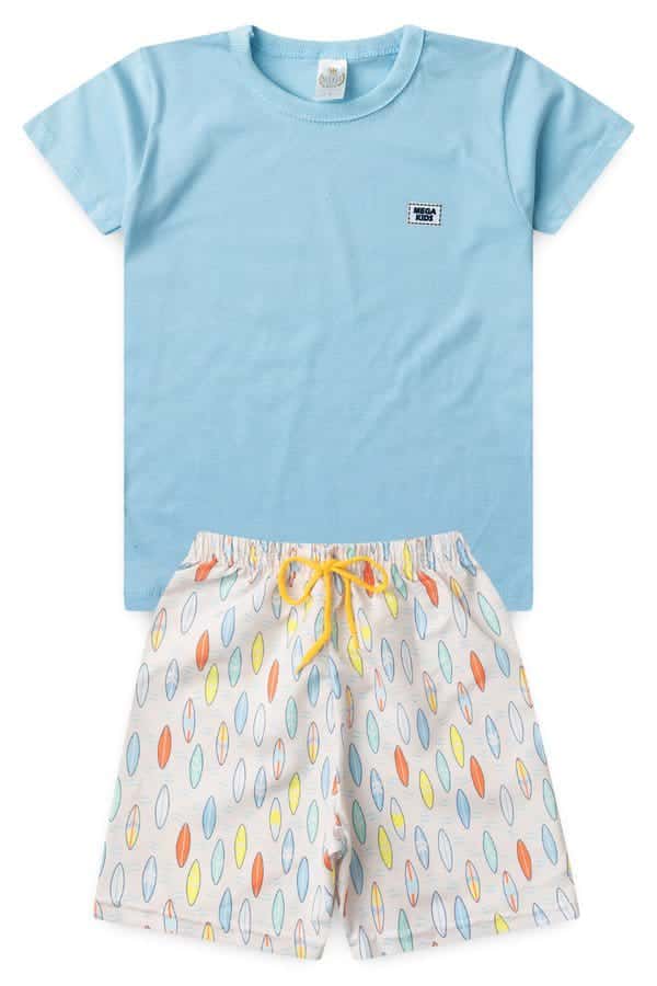 Conjunto verão masculino em meia malha na cor Azul com plaquinha, possui gola redonda, super estilosa.